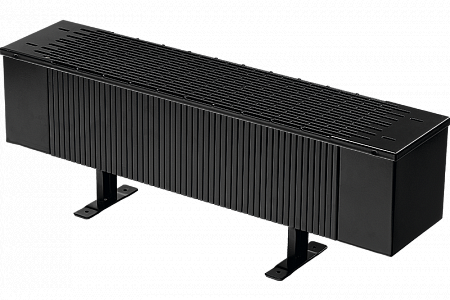 - Конвектор укомплектован клапаном воздухоудаления, кронштейнами, воздуховыпускной решеткой. Возможна комплектация воздуховыпускной решеткой двух видов - поперечной и просечной. Также возможна комплектация прибора отопления соединительными муфтами для перехода в узлах подключения с наружной резьбы на внутреннюю.