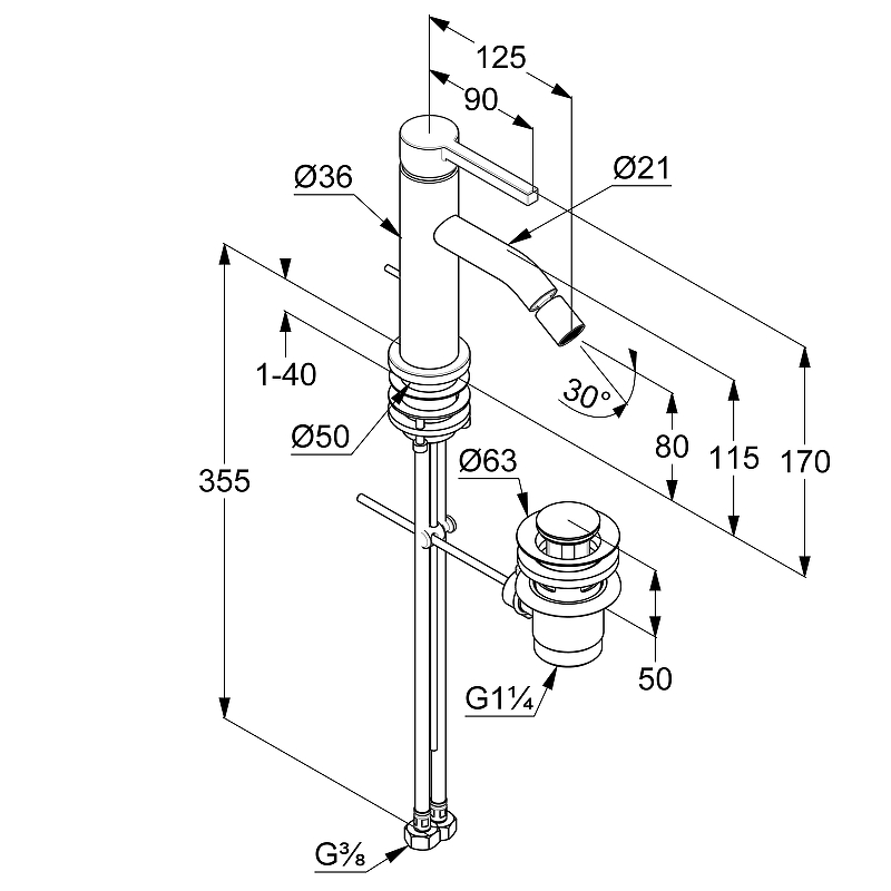 Донный клапан: G 1 1/4 из металла.