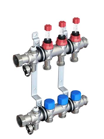 Коллекторная группа НГ 1" с вентилями и расходомерами, 7 контуров 3/4" EK