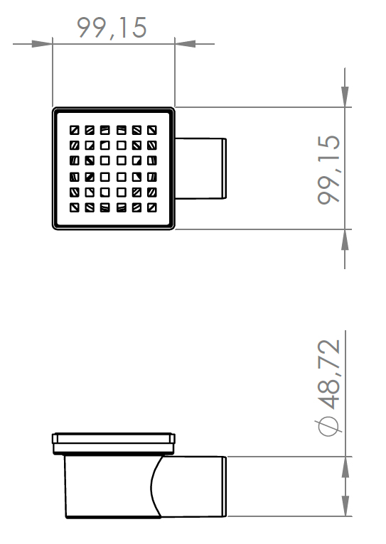 Душевой трап LORANTO LINE 100x100 боковой сток, решетка из нержавеющей стали, гидрозатвор сухой (301